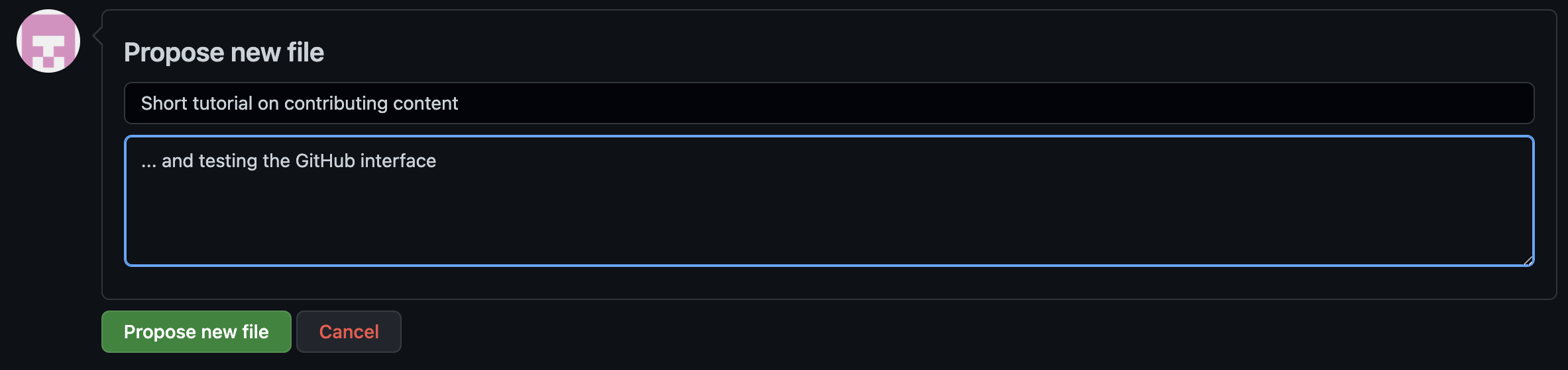 Once you are happy with your article, fill out the form at the bottom of the GitHub page, titled Propose new file. Provide a title and maybe a short comment for the editorial team.