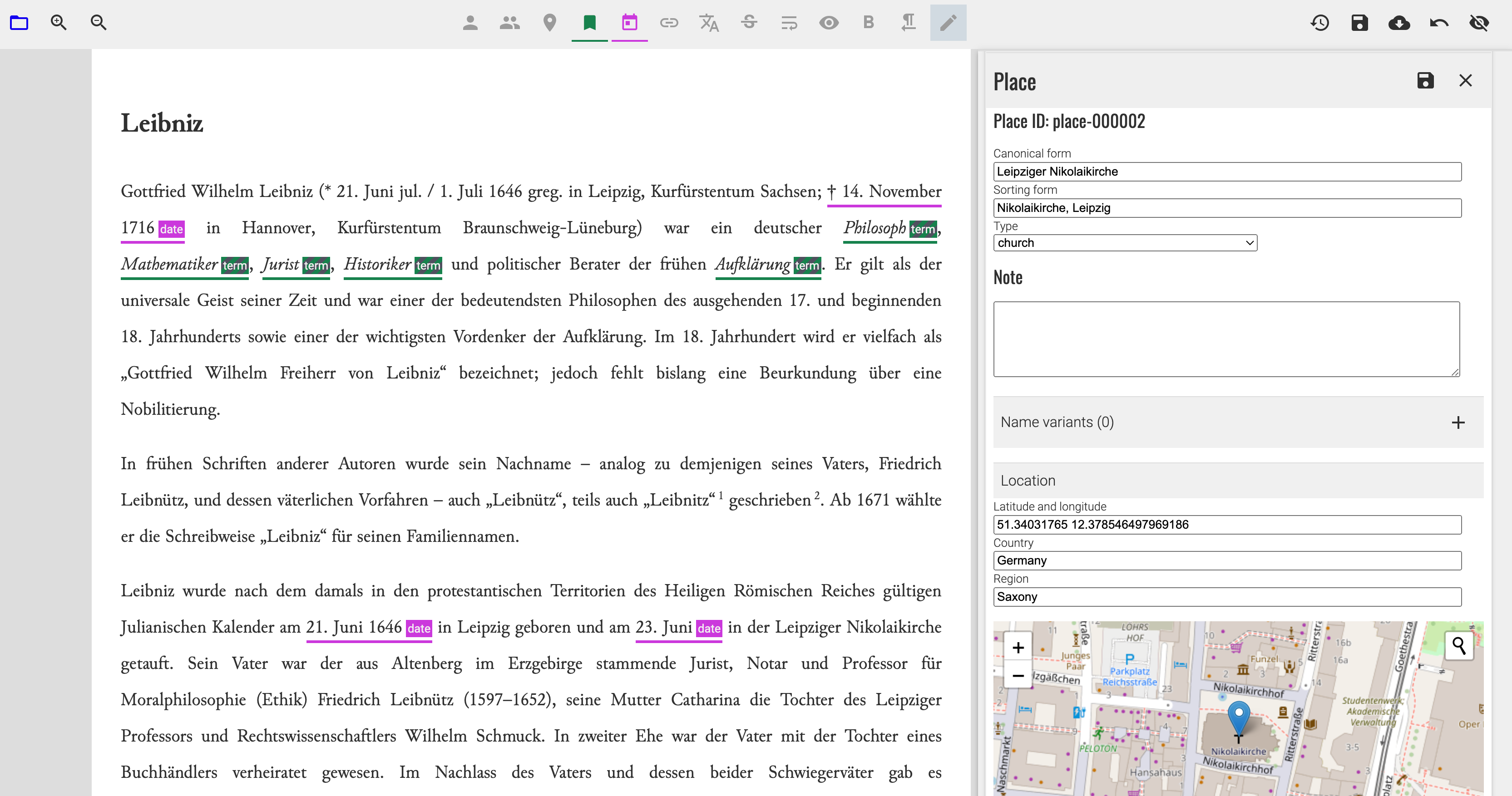 The new annotation editor boasts a new, more user friendly and ergonomic layout with additional capacity to add or edit registry entries from within the editor. Furthermore, a function to find potential matches in other documents for the current annotation and review them on the spot is a long awaited feature, which promises to speed up the editing process without compromising quality or consistency.